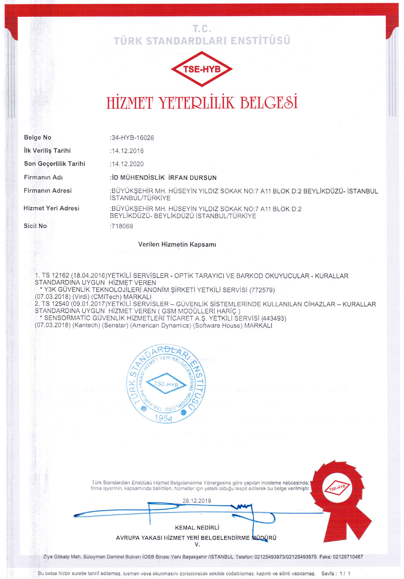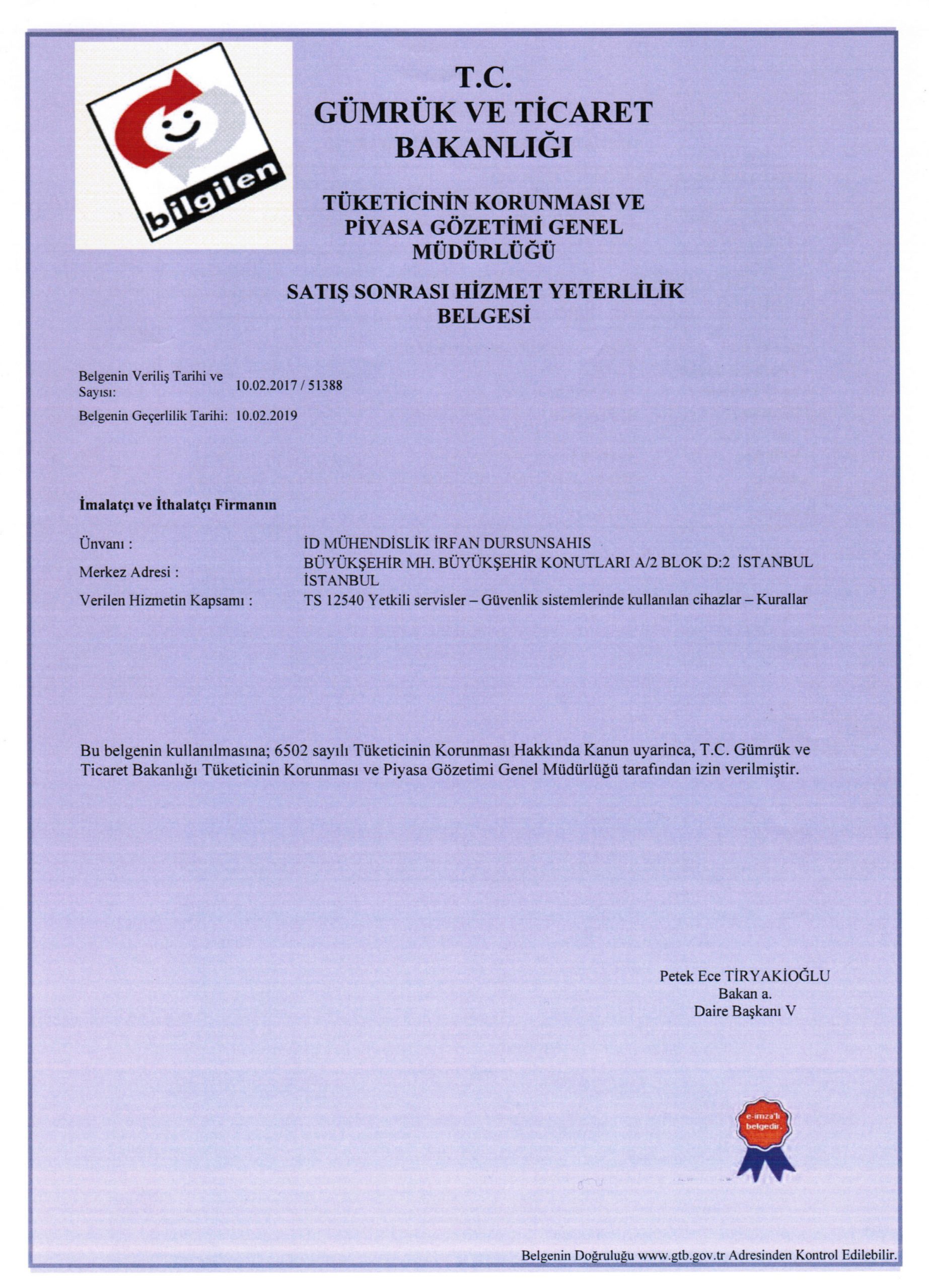 Güvenlik Sistemleri Hizmet Yeterlilik Belgesi