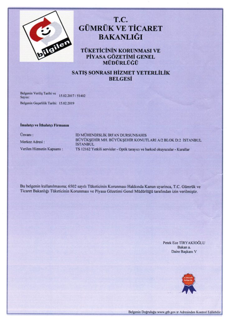 Optik Tarayıcı Hizmet Yeterlilik Belgesi