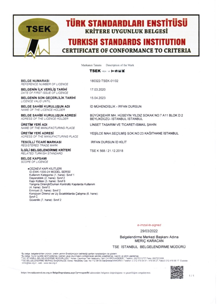 ID-EMK-1000 TSE Belgesi